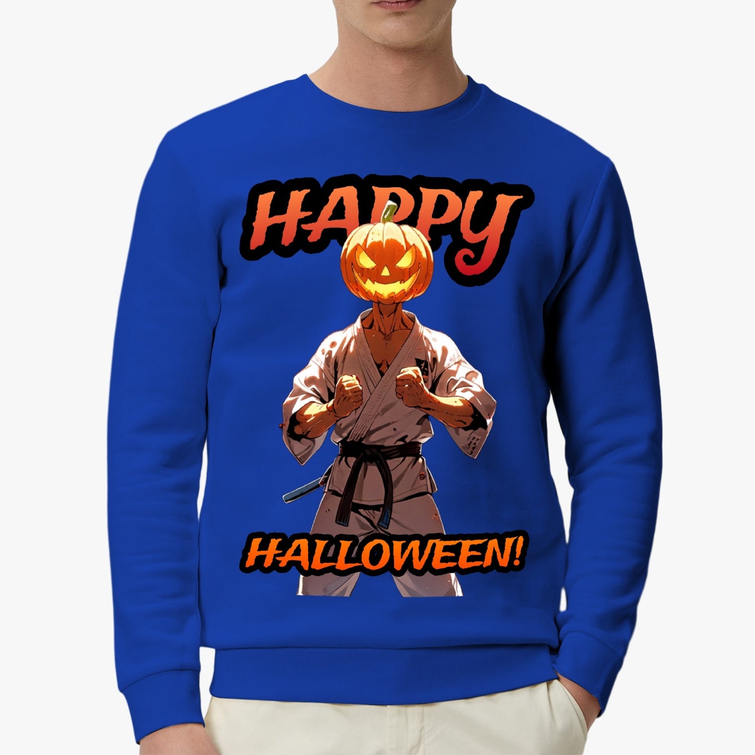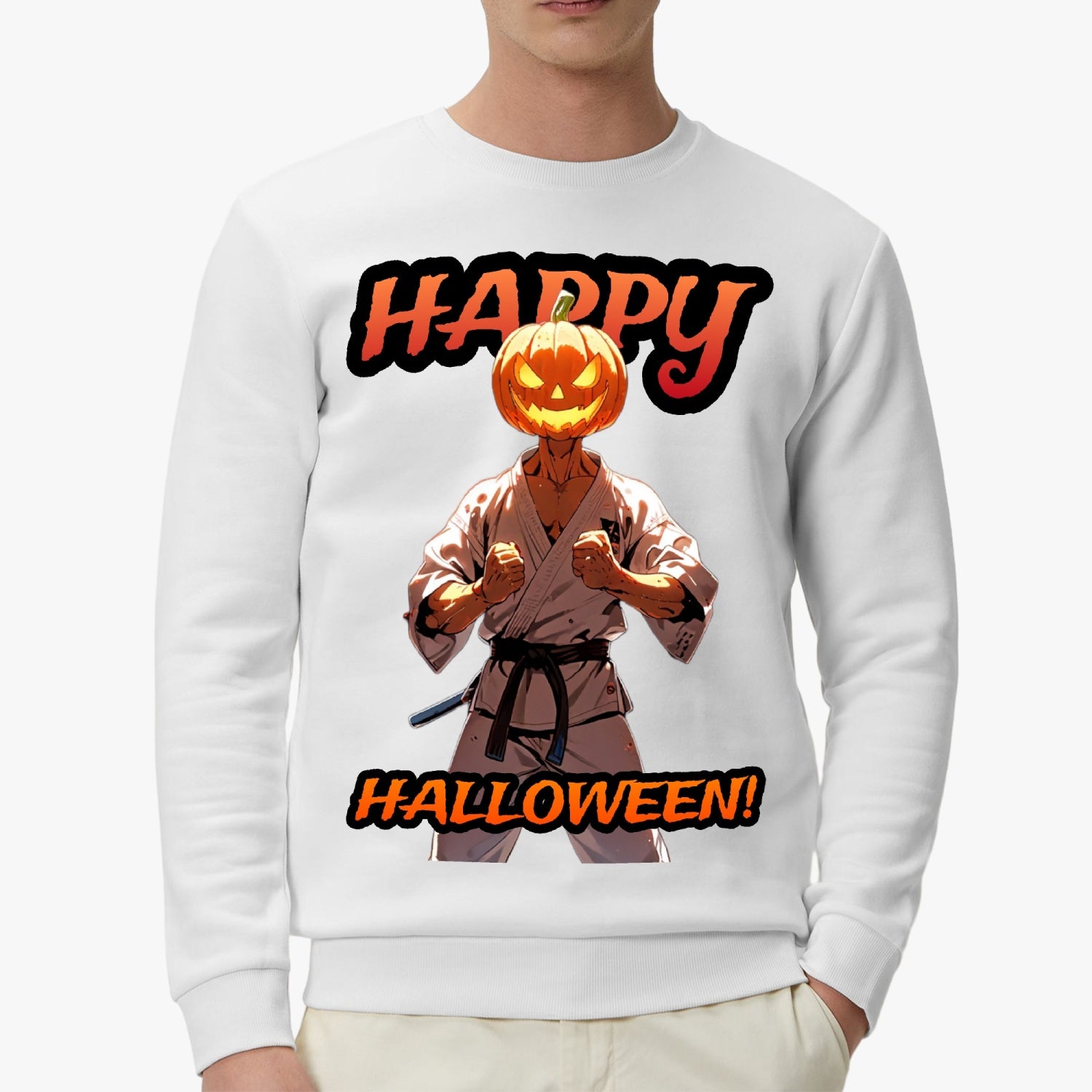 Unleash your inner martial artist this Halloween with our unique Pumpkin Head Karate Sweatshirt/Shirt! Featuring a fun and fierce pumpkin character dressed in a traditional karate uniform, this one-of-a-kind design is perfect for martial arts enthusiasts and Halloween lovers alike. Made from soft, high-quality fabric, it's ideal for casual wear, workouts, or even your next training session. Stand out in style while showing off your love for both karate and the spooky season. Get ready to kick up some fun this Halloween!